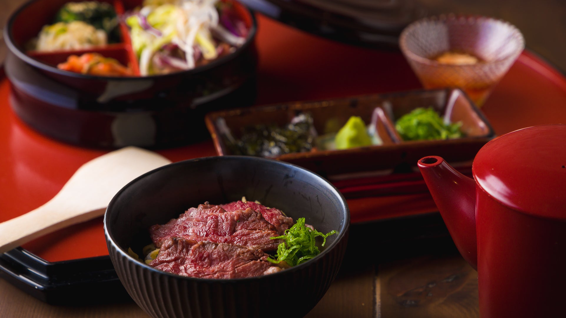 当店ではそんな「肉まぶし」のラインナップに焼肉店ならではの牛カルビ・牛ハラミをはじめ、お店の看板メニューである牛タンを加え、日替わりでご用意しております。〆のお出汁以外にもサラダやナムルのついたお得な定食は、ライスの大盛も無料です。焼肉屋が本気で作った肉まぶしを是非一度ご賞味ください。