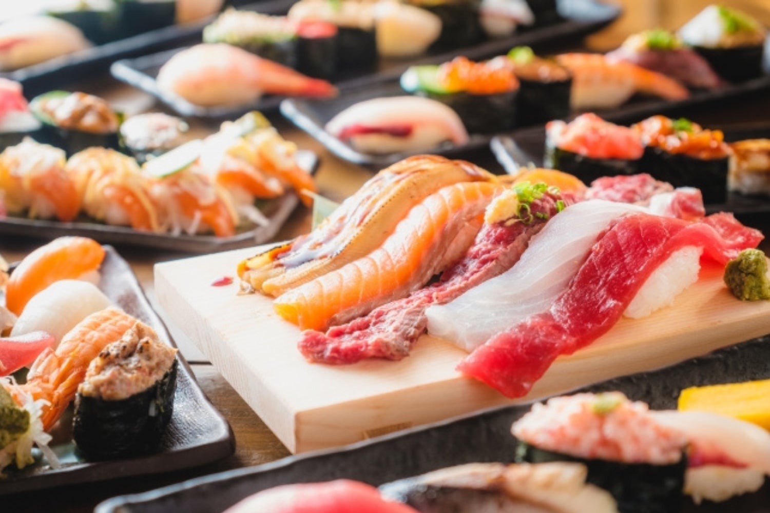 当店の目玉商品は、バラエティ豊かなお寿司をお腹いっぱいお召し上がりいただける“お寿司の食べ放題”です。