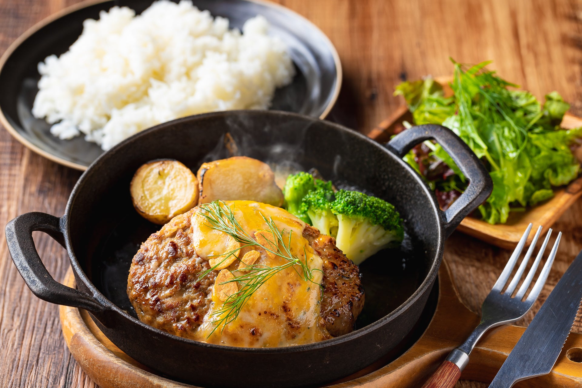 ボリューム満点のハンバーググリルには、全品贅沢にチーズを使用。チーズには免疫力UPや美容効果が期待できる栄養素が豊富に含まれていますので、午後へのパワーチャージにぴったりのグリルセットです。