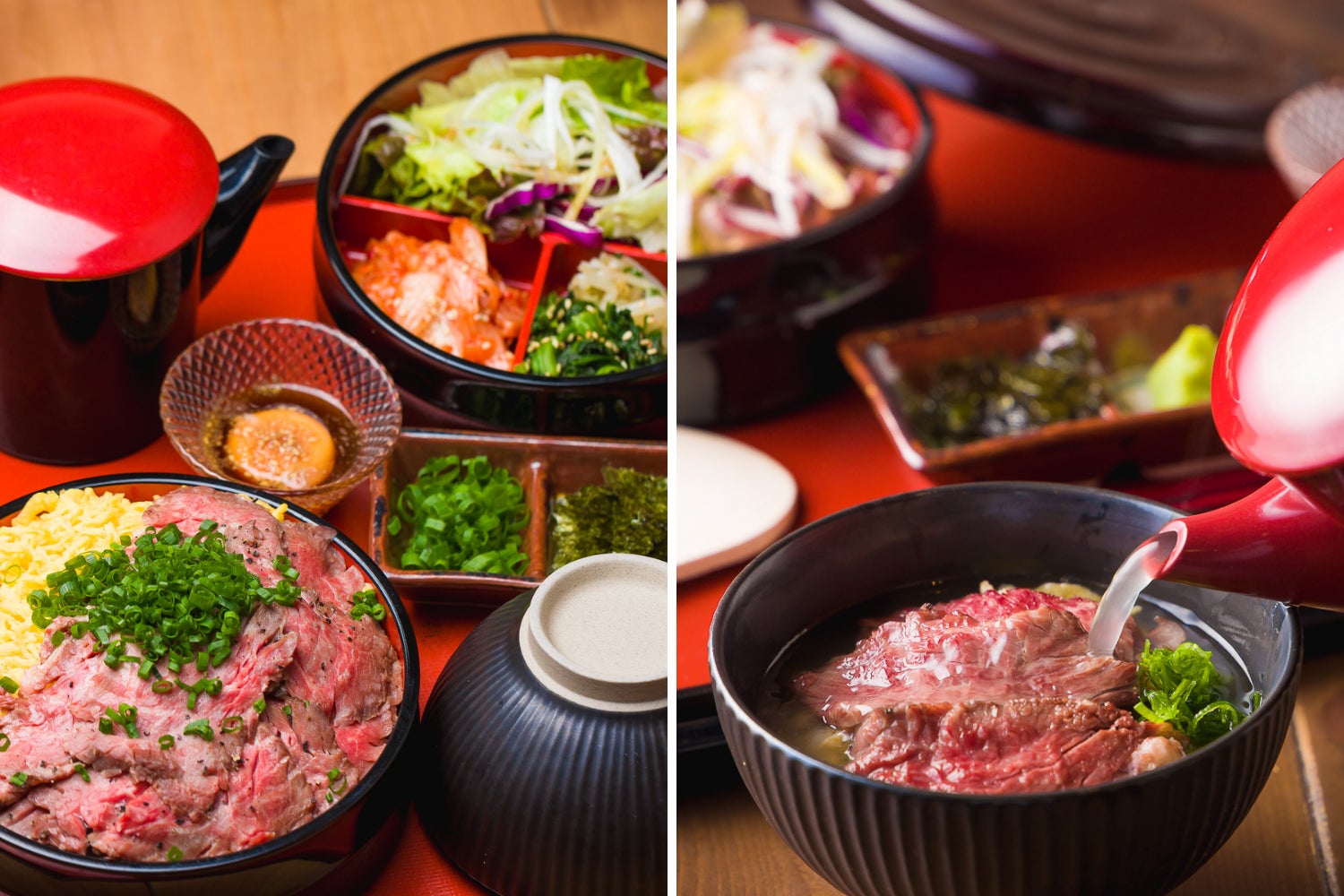 肉まぶし追加メニュー「特製出汁とろろ」も味変におすすめです。王道の「牛タン×とろろ」はもちろん、「和牛赤身×とろろ」も両者の旨味を引き出しあい深い味わいをお楽しみいただけます。