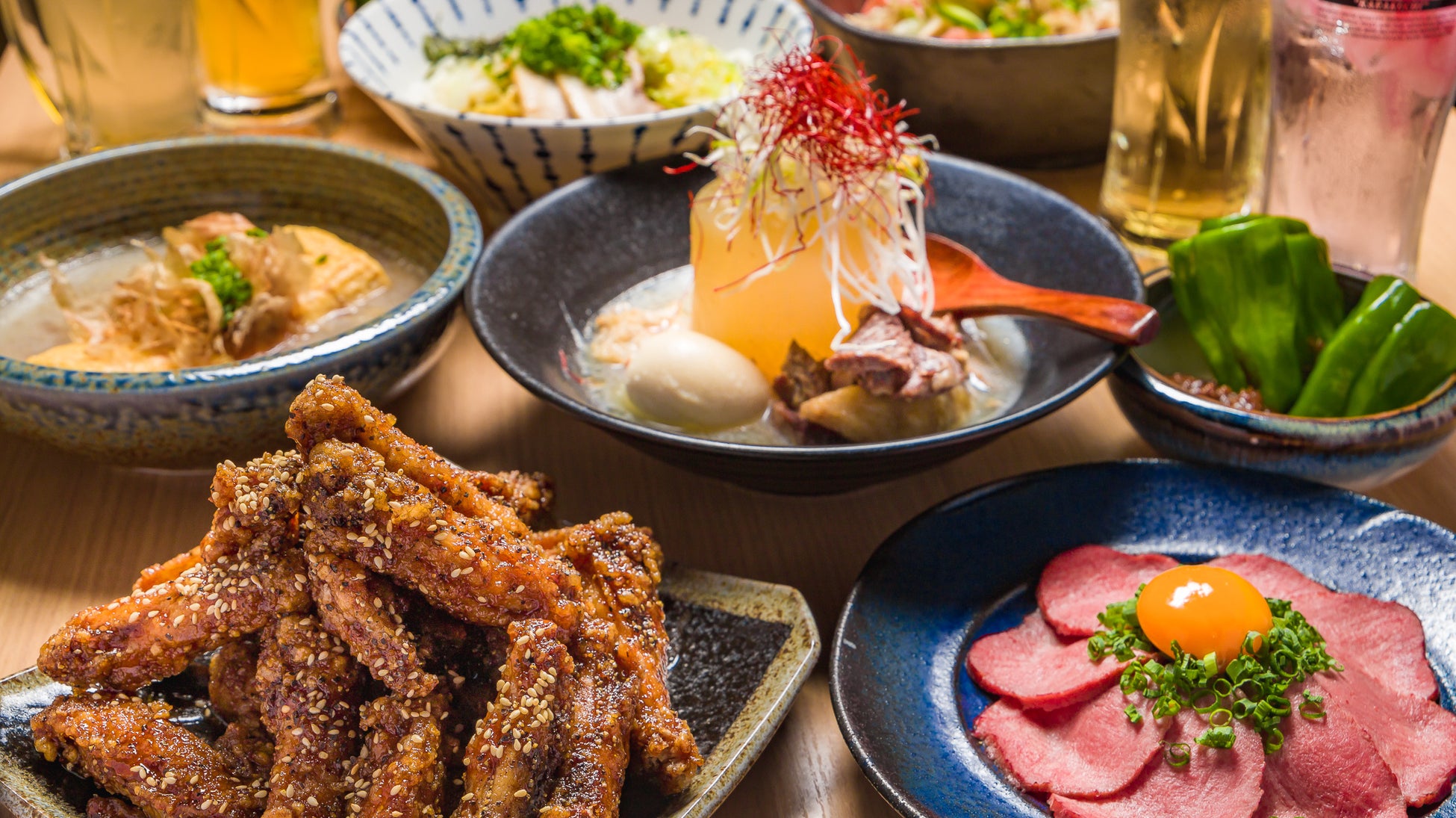 一度食べたらやみつき必須、秘伝の極みだれに漬け込んだ手羽中唐揚げは、ビールやハイボールにピッタリの逸品です!ゴエモンに来たらまずはこれを食べてほしい店主こだわりの無限∞手羽揚げです。