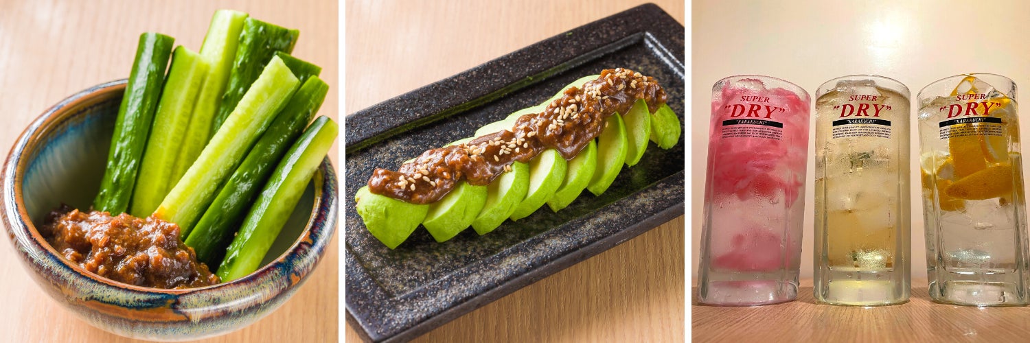 箸休めに楽しんでいただきたいのが、自家製の熟成肉味噌にディップして食べる新鮮野菜。定番のハイボールはもちろん、レモンまるごと一個分使用したレモンサワーや、食事と相性抜群の「ガリ」サワーなどの炭酸ドリンクと合わせるのがおすすめです。