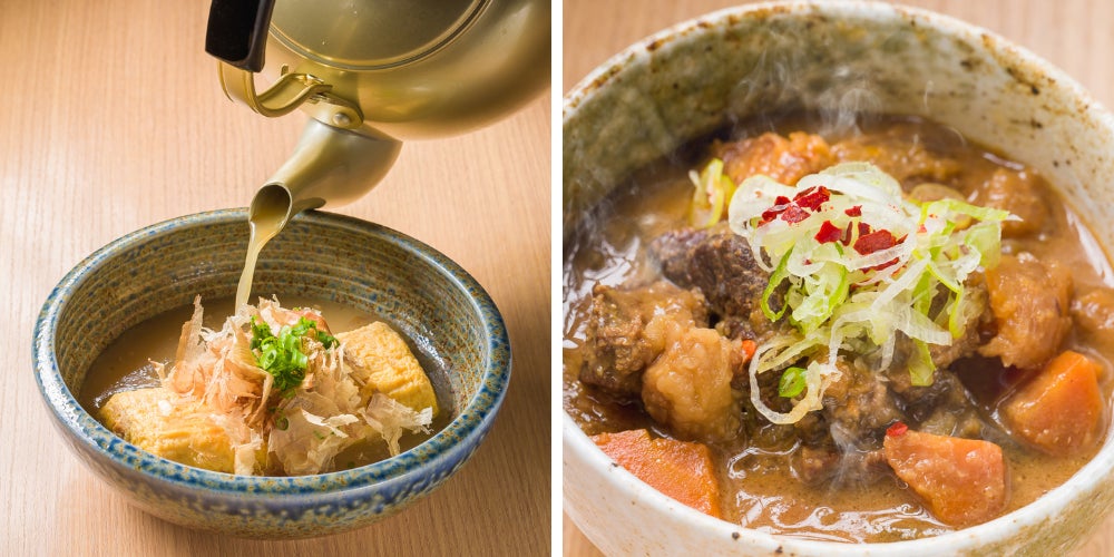 この時期に嬉しい、身体のあたたまる逸品料理も多数ご用意しております。だし巻き玉子は、お客様の目の前でお出汁を「追いがけ」するため、アツアツの状態でお召し上がりいただけます。長時間煮込んだ牛すじは、お箸で挟むだけでほろほろと崩れるほど。濃厚な味付けはお酒との相性も抜群です。
