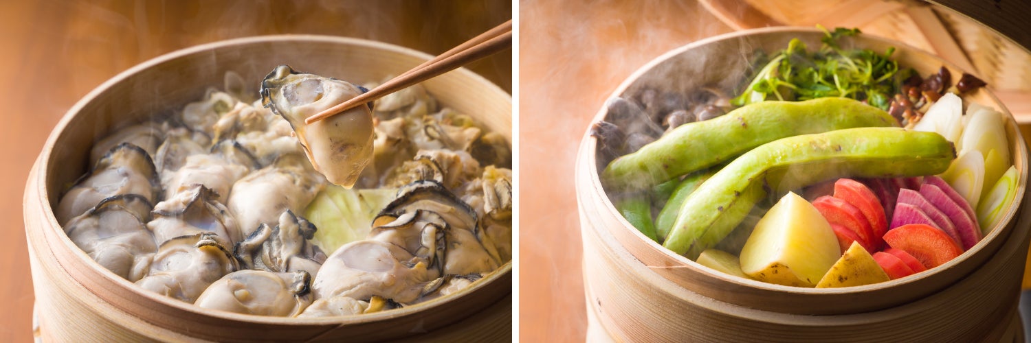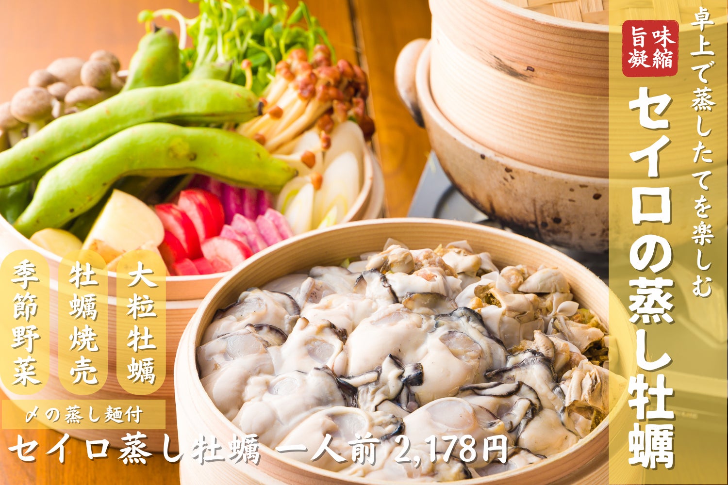 免疫力の低下しがちな季節の変わり目や、食欲低下してしまう真夏など、これからの季節にぴったりの「セイロの蒸し牡蠣」をぜひご堪能ください。
