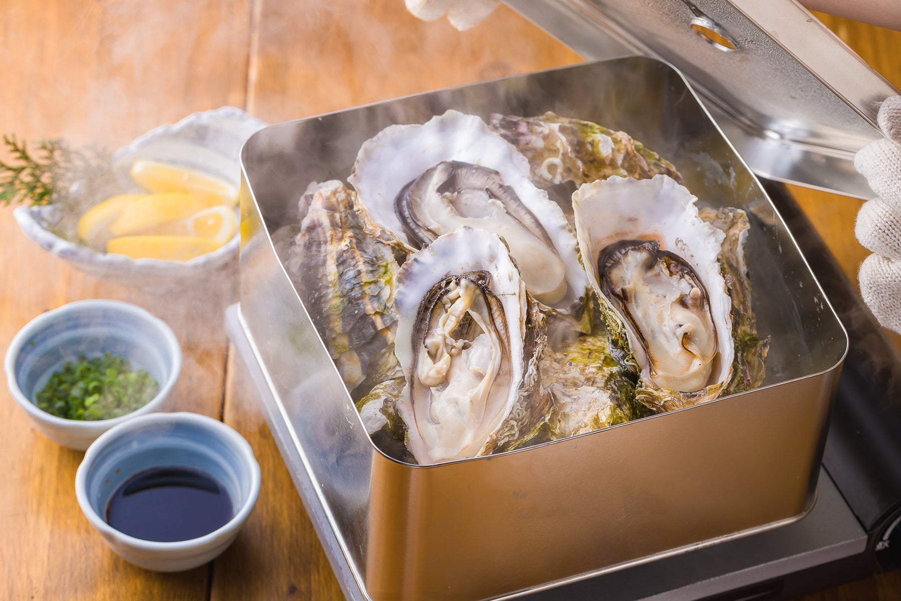 缶の中で蒸し焼きされた牡蠣は、旨味がぎゅっと凝縮され、身もぷりっぷりに仕上がります。あふれ出る磯の香りを存心ゆくまでご堪能ください。風味豊かな蒸し牡蠣はそのままでも美味しくお召し上がりいただけますが、レモンや卓上のポン酢などでの味変もおすすめです。牡蠣はもちろん食べ放題ですので、アレンジをしながらお好みの食べ方を見つけてください。