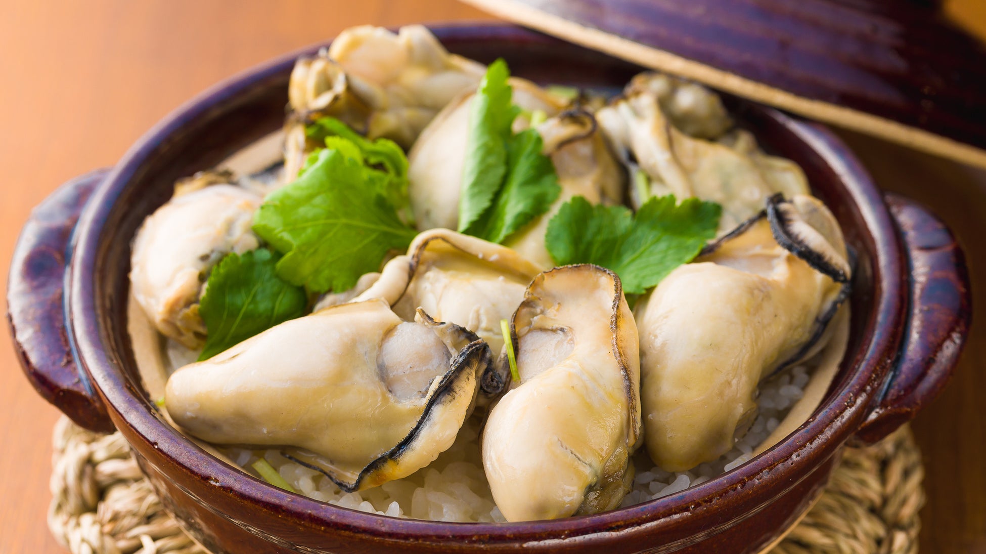 さらに牡蠣は亜鉛・鉄などのミネラルや、ビタミンB1・B2・B12などのビタミン類、タウリンなどのアミノ酸、グリコーゲンなど魚介類の中でも栄養豊富な食材で、免疫力の低下しがちな秋の時期にぴったりの食材です。多くの水溶性の栄養素は茹でや、しゃぶしゃぶのような調理法では損なわれがちですが、土鍋ご飯にはそのような心配も無用です。油も使用していないためカロリーも控えめで、美味しいものを食べたいけど栄養バランスも気になる女性には一押しです。