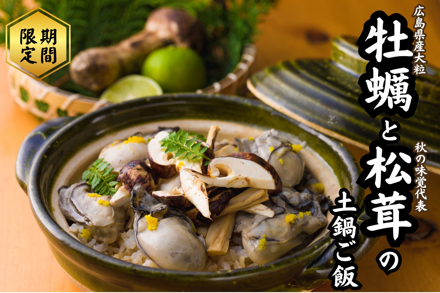 2023年10月23日(月)より、今秋の限定メニューとして「牡蠣と松茸の土鍋ご飯」の提供を開始いたします。お米が見えなくなるほどに敷き詰められた大粒の牡蠣(広島県産)と、秋の味覚の代表格である松茸を贅沢に一本分使用して炊き上げた土鍋ご飯は、芳醇な香りと濃厚な旨味を楽しめる贅沢な逸品です。注文を受けてから炊き上げますので、炊き立てをお楽しみいただけます。