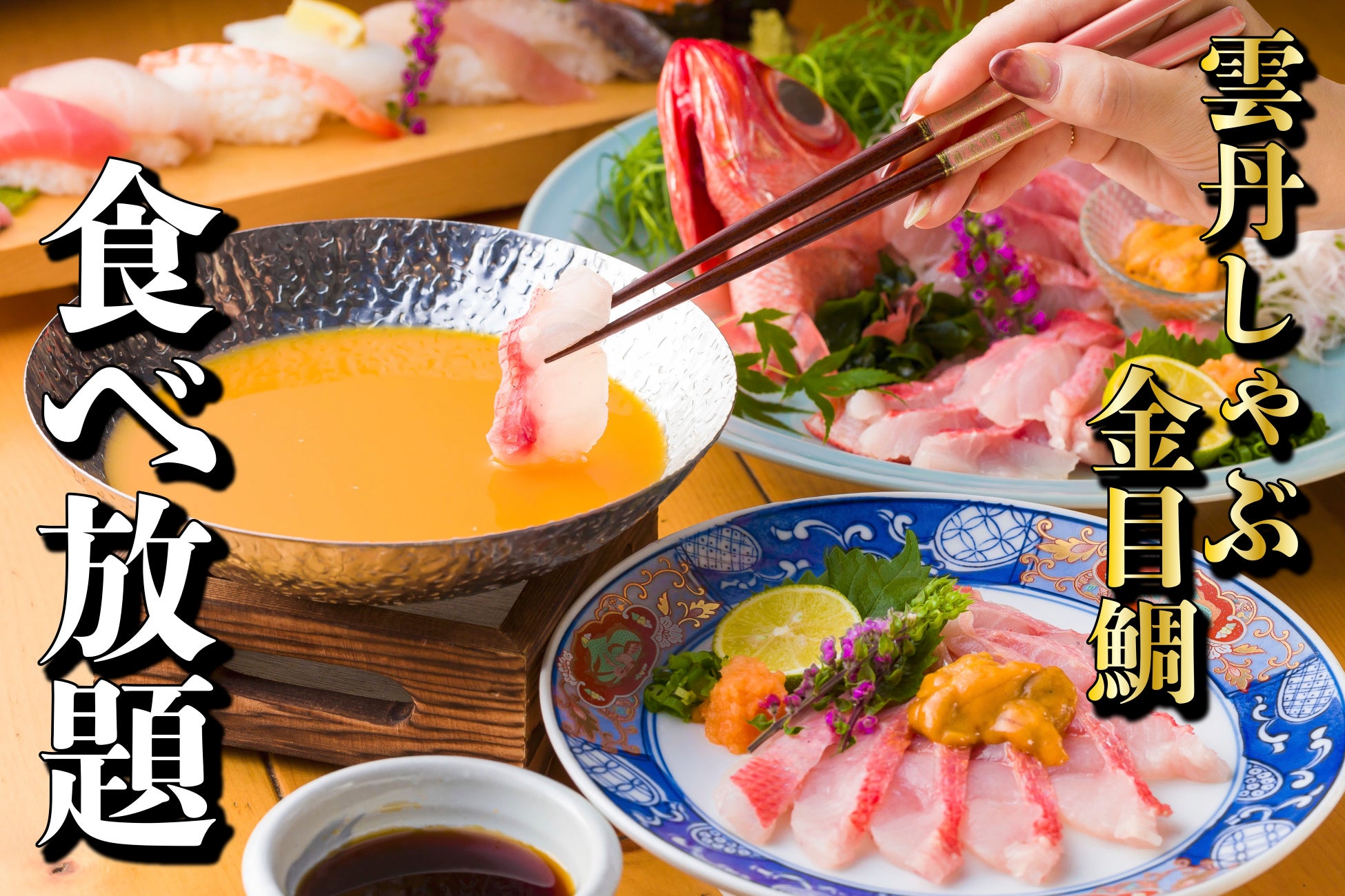 お寿司だけでなく「ズワイカニ×お寿司」「牡蠣のカンカン焼き×お寿司」など様々なプランが楽しめるところも当店の魅力のひとつですが、このたび「海鮮しゃぶしゃぶ×お寿司」が食べ放題となる新プランが登場いたしました。