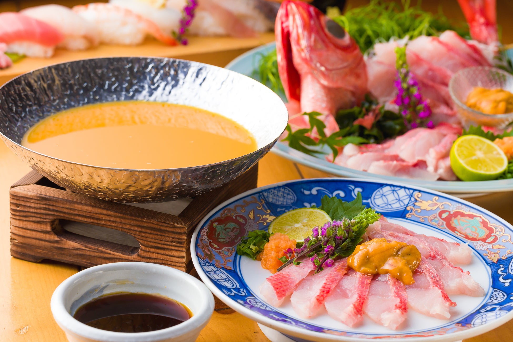 新プランの目玉となるのは、雲丹をたっぷり溶かしたお出汁に金目鯛をくぐらせて食べる「金目鯛の雲丹しゃぶ」。金目鯛は、美しい見た目と味わい深さから長年人気を博しておりますが、当店の雲丹しゃぶではお寿司にも使用している新鮮なものだけを使っているため、その旨味や繊細な食感を余すことなくお楽しみいただけます。また、雲丹の濃厚な旨味が溶け出したお出汁によって、金目鯛の淡泊な味わいに深みが増し、一度食べればやみつきに。もちろん、食べ放題ですので心ゆくまでご堪能ください。