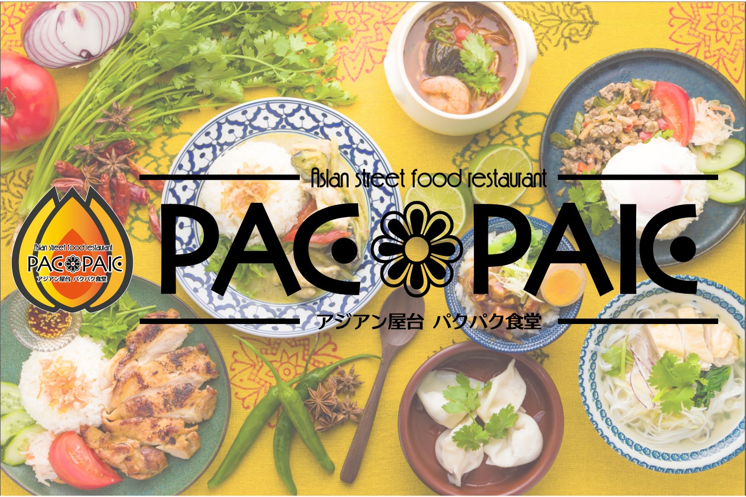 店名の「PACPAK(パクパク)」には、アジアン料理には欠かせない野菜の「パクチー」、美味しさでお箸が止まらない様子を表現した「パクパク」の二つの意味を込めました。すでにアジアン料理が好きな方も大満足、まだ食べたことが無い方でもお箸が止まらないほど癖になる、PACPAK食堂のラインナップをお楽しみください。