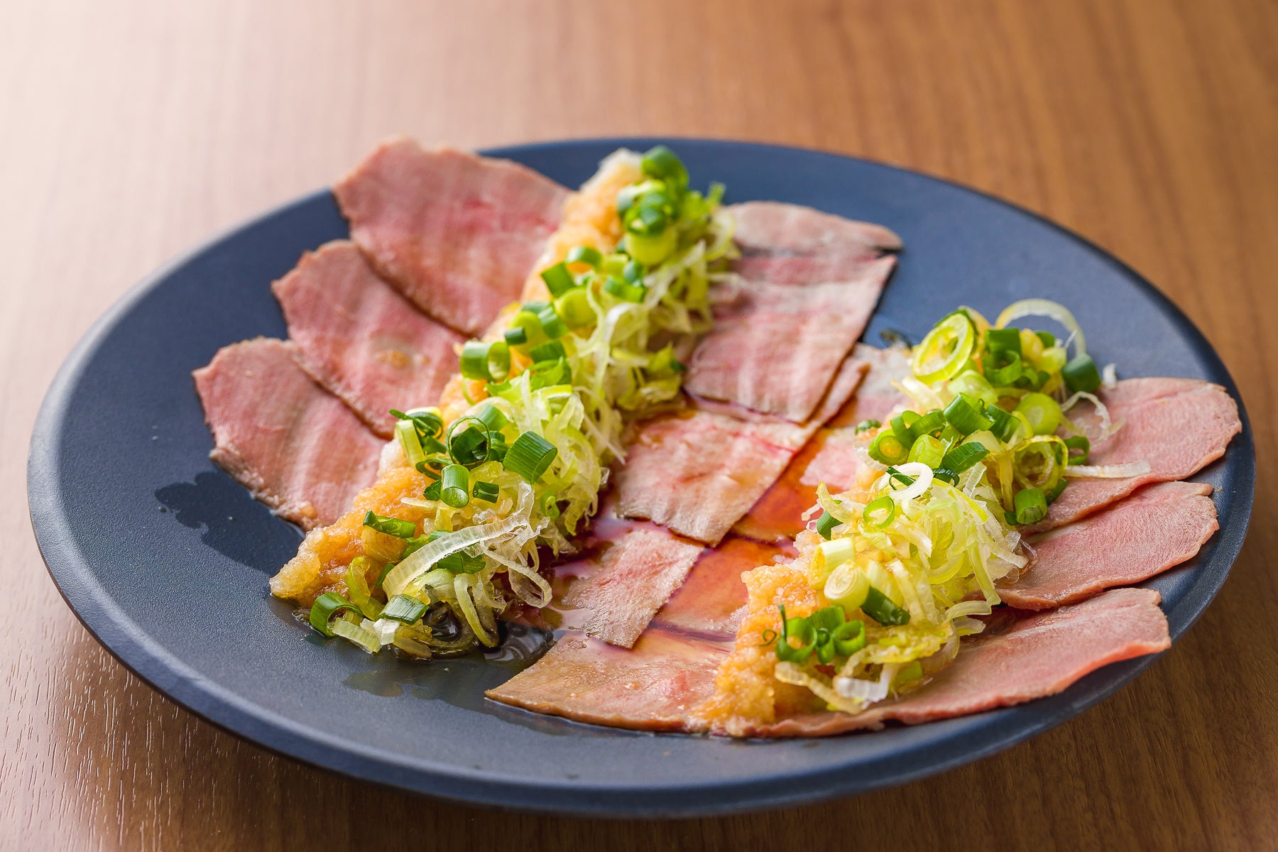 一枚の牛タンで様々な部位を楽しむことができ、4種の野菜とポン酢を合わせることで独特の風味と食感が楽しめます。口の中に広がる爽やかな風味と贅沢な味わいをご堪能ください。
