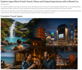 日本最大級のレンタカー予約サイトtocooのブログで紹介されました