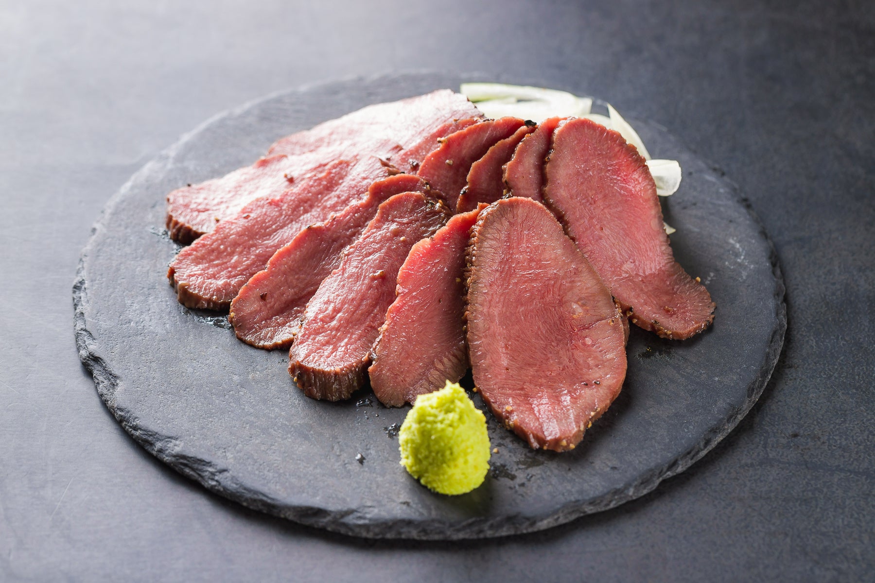 仙台グルメの定番【牛タン】丁寧にじっくりと熟成加工を施し、歯切れが良くなるようにスリット(切れ込み)を入れることで厚みがありながらもサクッと簡単に嚙み切ることが出来、かつジューシーで牛タンの旨味をしっかりと堪能することが出来ます。