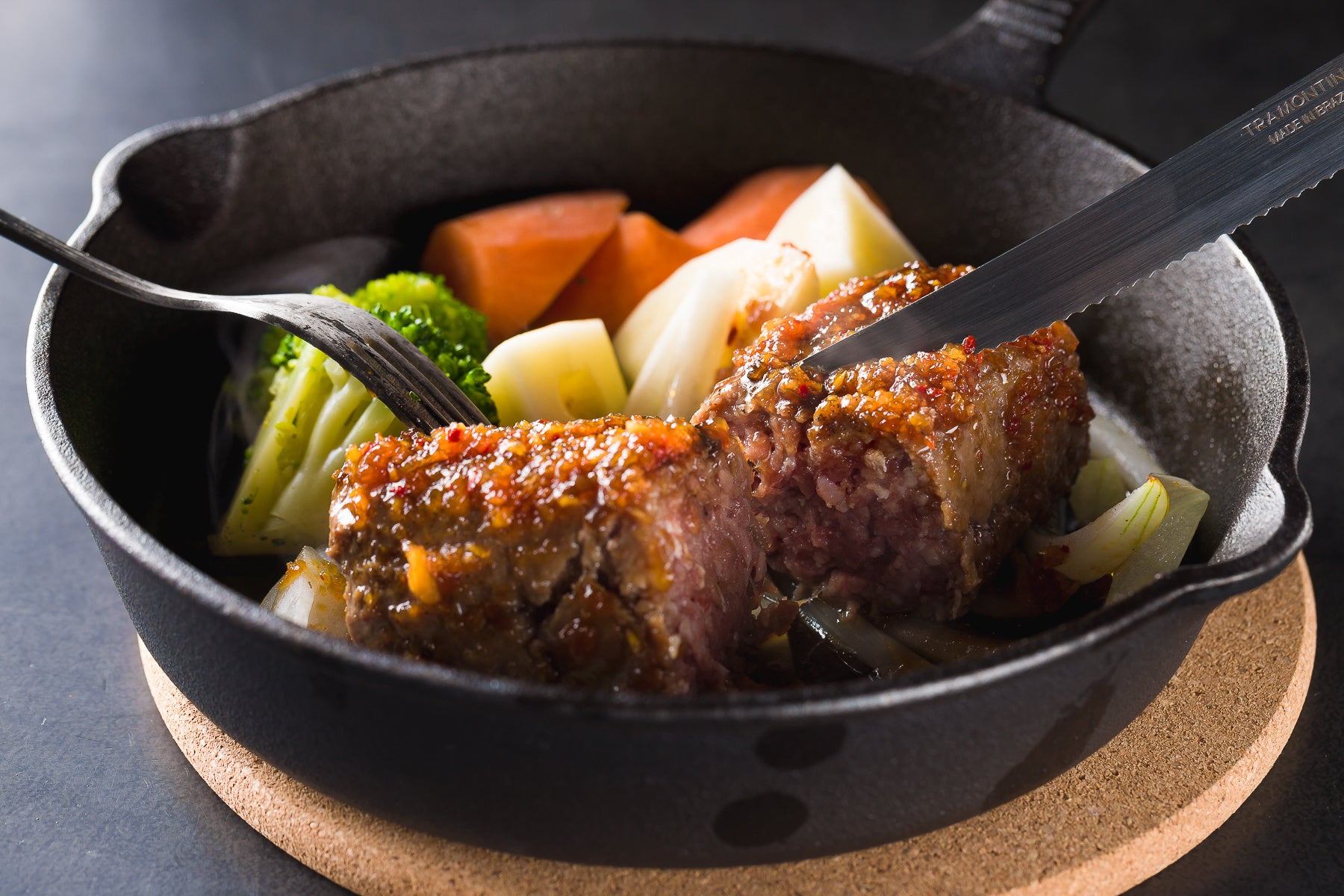 このハンバーグは通常とは違い、牛タンをハンバーグに混ぜ、独特な食感と牛肉100%により肉の旨みを一層引き出しております。肉に合わせてブレンドした一心たん助のオリジナル米との相性も抜群です。