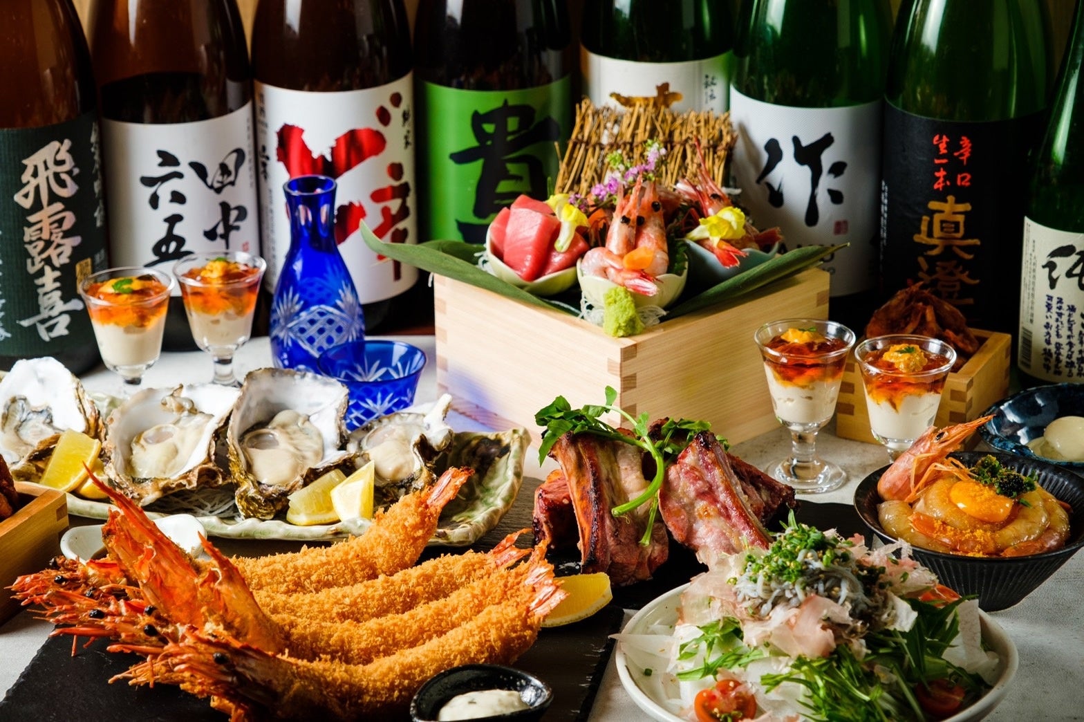 - 海老や牡蠣の濃厚な味わいと日本酒を合わせて楽しむ
