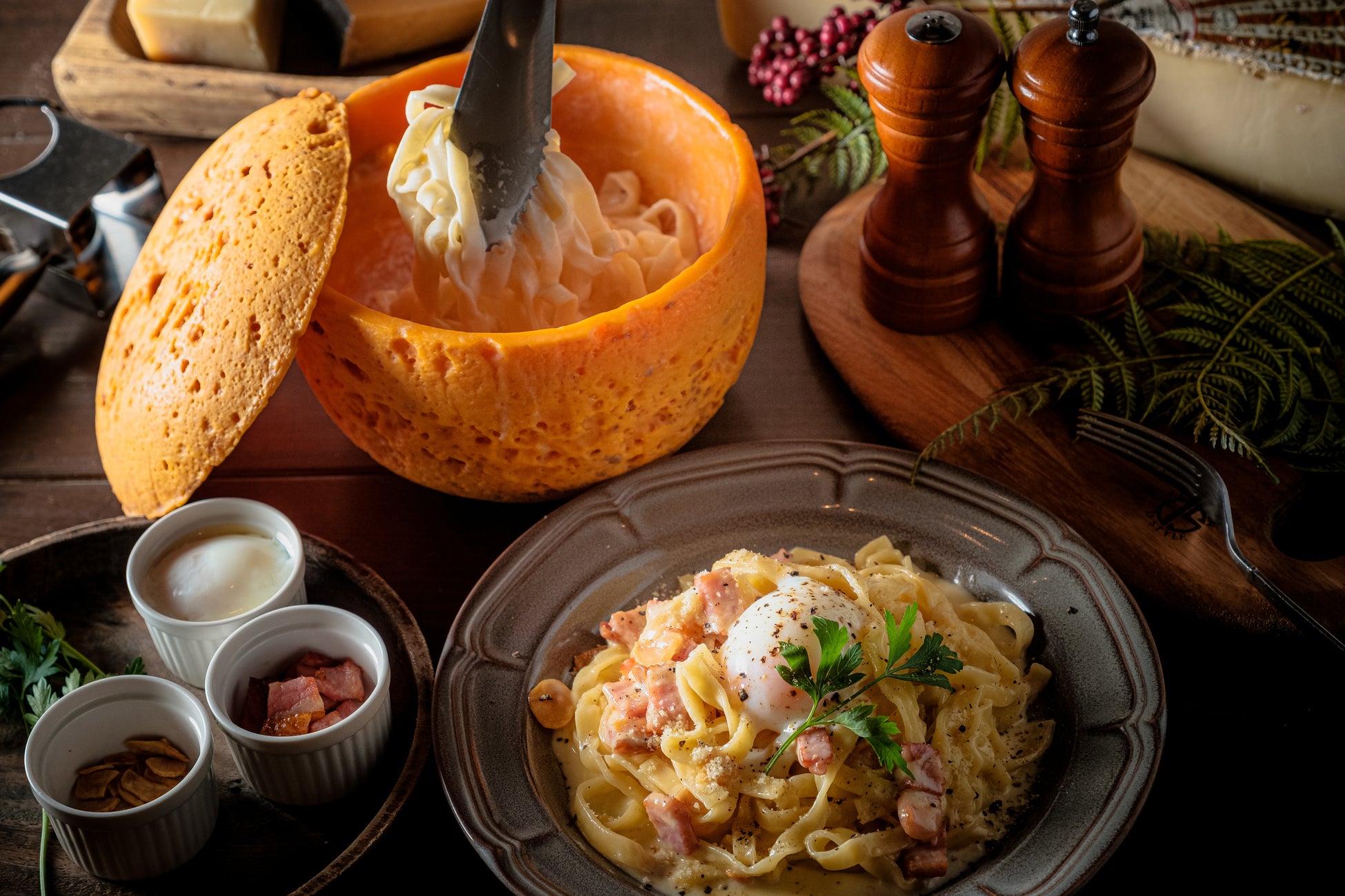 20kgのハードチーズ・グラナパダーノチーズをダイナミックに削りながら作るチーズリゾットや、まるでメロンのような見た目のミモレットチーズを丸ごとくり抜いて作ったボウルで仕上げる、チーズの香り豊かな「特製のカルボナーラ」など、チーズ専門店ならではの味をご用意いたしました。お客様の目の前で仕上げることにより、出来たての美味しさを五感で楽しんでいただける商品になっております。