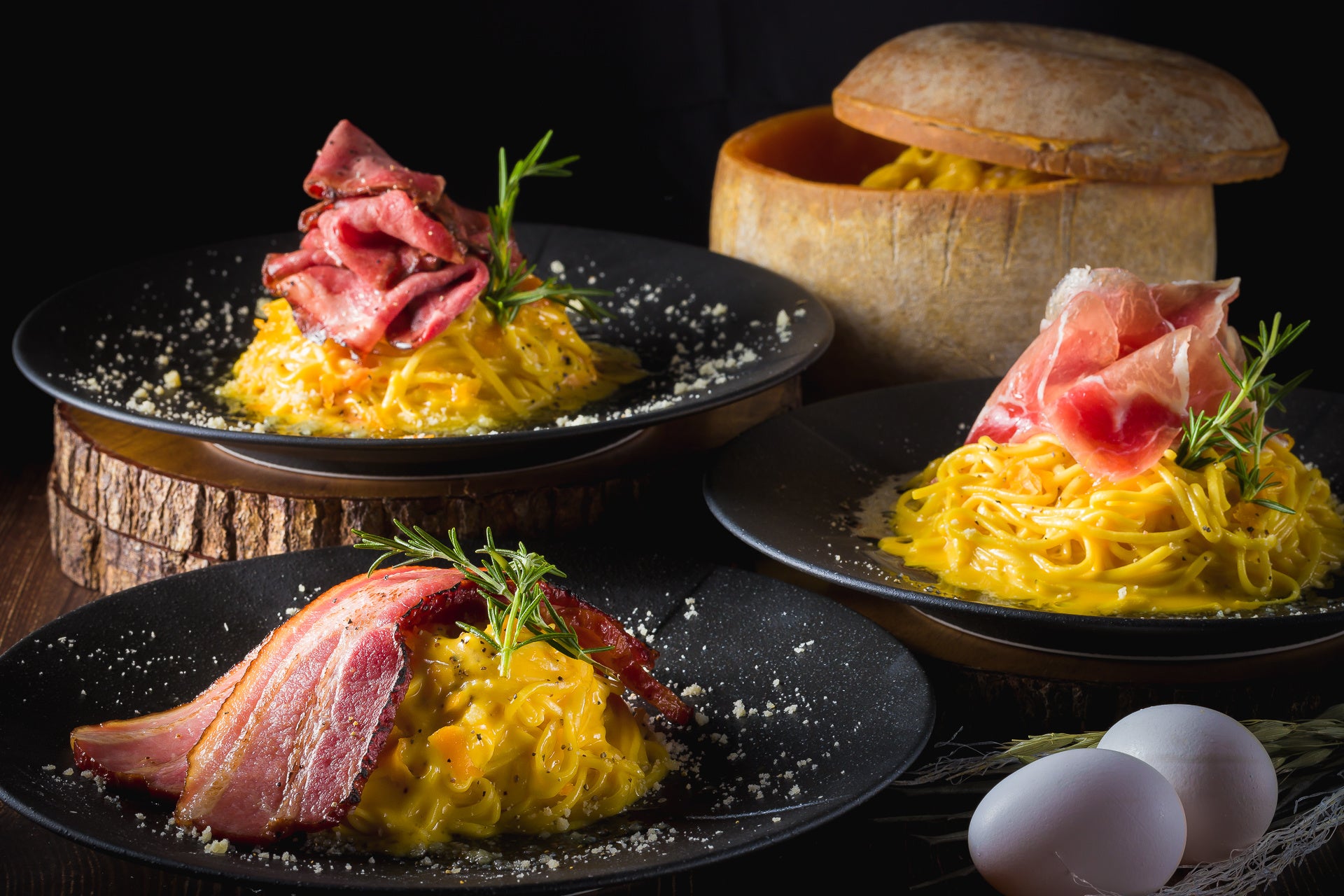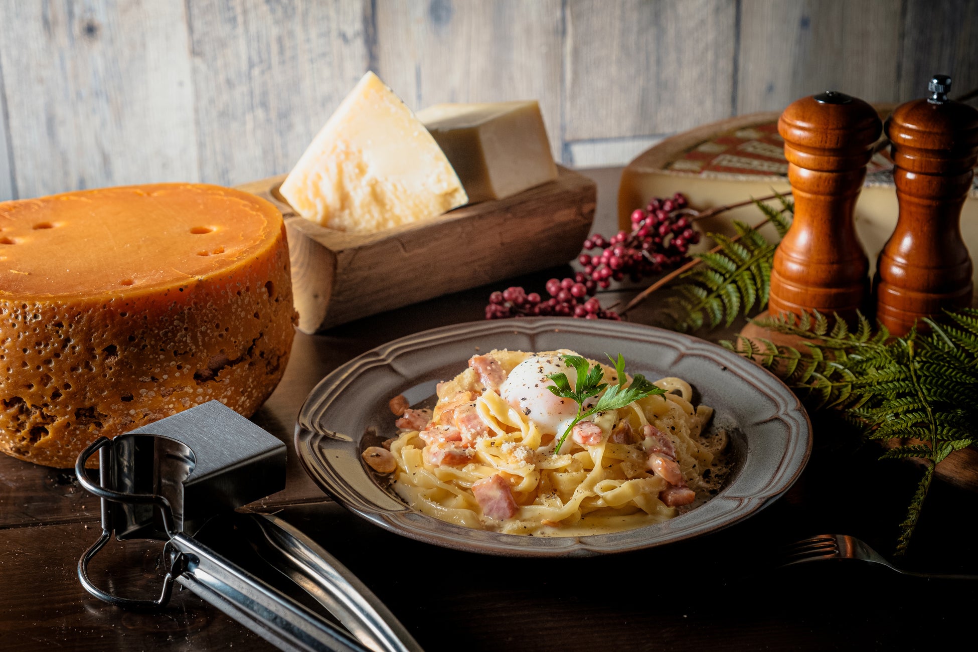 - 贅沢すぎる!肉盛り×ミモレットチーズの器で仕上げる濃厚カルボナーラ
