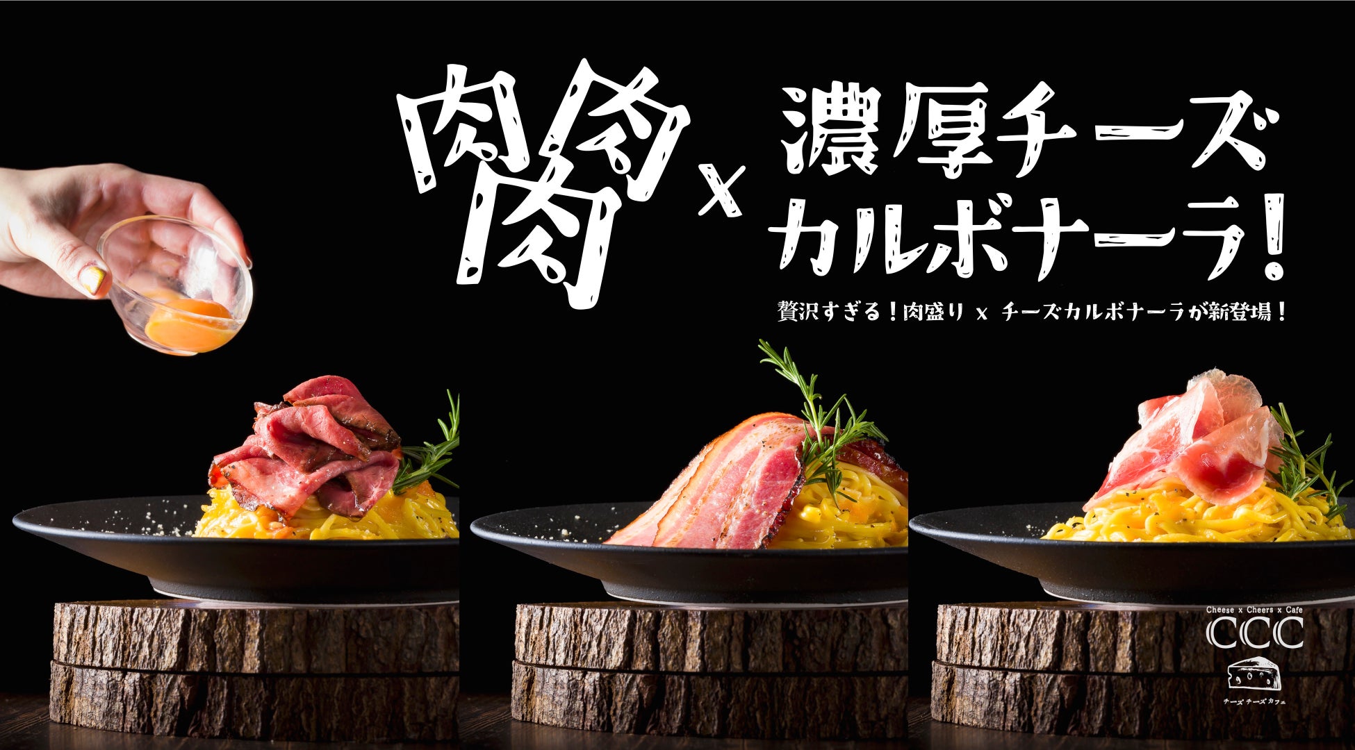 チーズ料理専門店『CCC Cheese Cheers Café (チーズチーズカフェ)』は、人気商品「ミモレットチーズの濃厚カルボナーラ」の新シリーズ「贅沢すぎる肉盛りカルボナーラ」の提供を開始いたします。2022年6月8日(水)~6月30日(日)の期間限定商品となりますので、是非期間中にご利用ください。