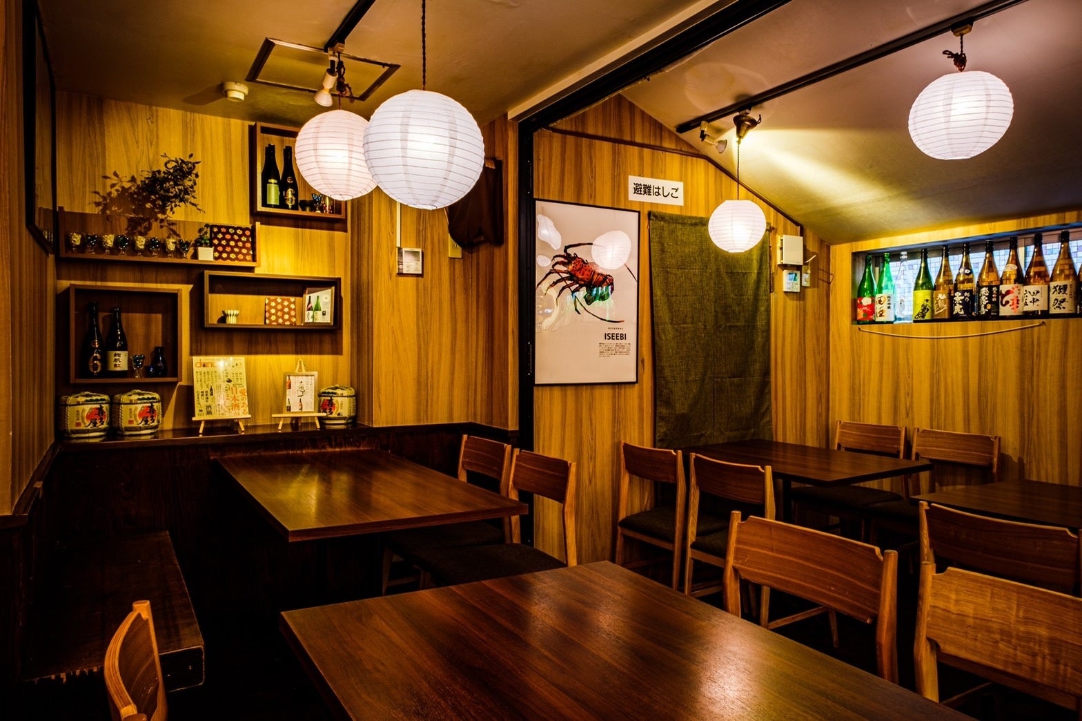 新橋の路地裏にあるビルの3階、のれんをくぐりカラフルなステンドグラスの引き戸を開けると、清潔感のある広々とした空間が広がり、2名様から最大40名様までご利用いただける店内はデート、女子会、宴会など様々なシーンでお使いいただけます。