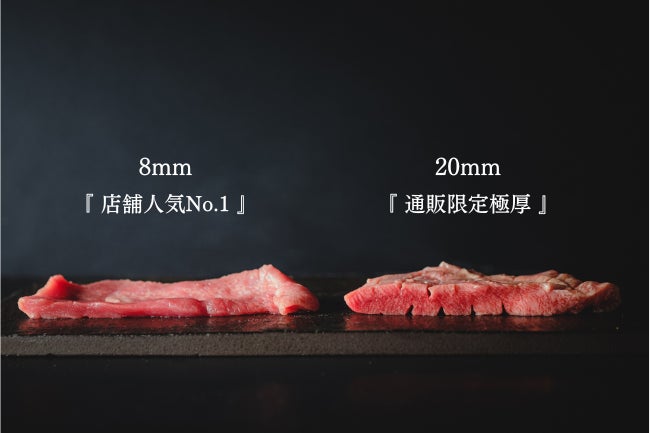 牛タンの厚さによるバリエーションも豊かになりました。従来店舗で人気となっている8mmの牛タンはまさにお店の味そのもの。程よい厚みと簡単にかみ切れる柔らかさ。15mm、20mmと厚みを増すごとに食べ応えがUPし、今までの牛タンの概念を変えてくれる、そんな商品となっております。20mmの牛タンは現在日本で販売されている牛タンお取り寄せの中で最厚となっております。ぜひご賞味ください。