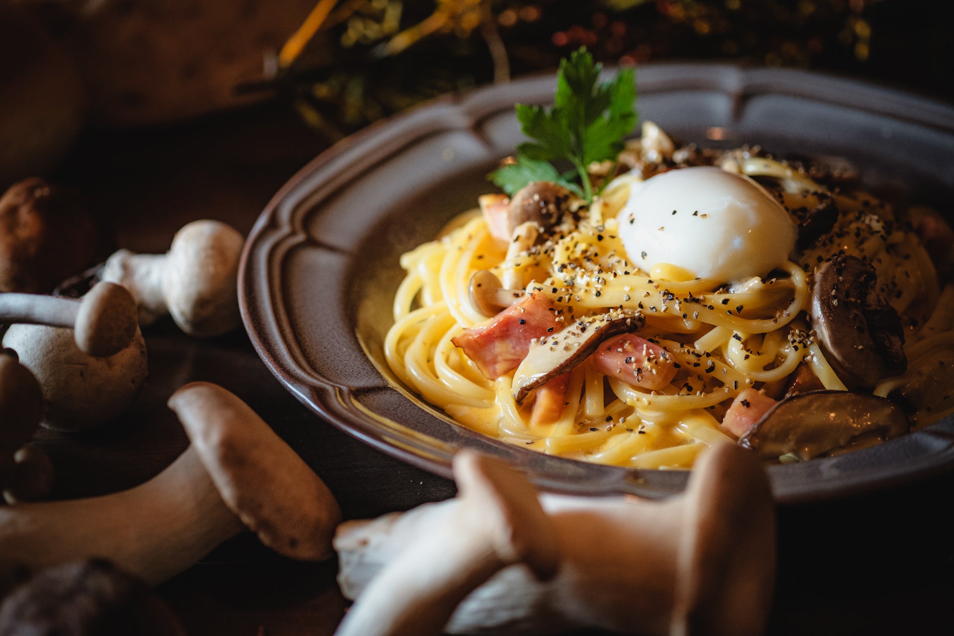 クリーミーなカルボナーラには風味豊かな3種類のきのこ(まいたけ、エリンギ、しめじ)を使用しており、ミモレットチーズを絡めて濃厚に仕上がったもちもちのパスタは、一度食べればやみつきに。きのこの香りとミモレットチーズの旨みがマッチした、濃厚カルボナーラは、この秋必ず食べていただきたい逸品です。