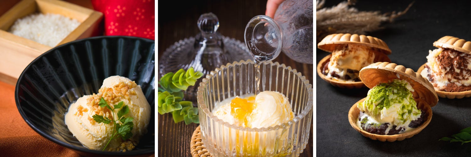 飲んだ後のデザートも大事!お米で作ったオリジナルスイーツ「お米アイス」は、お餅のようなもちもち感が新しい、新食感アイス。毎日店舗で手作りしています。そのまま食べてももちろん美味しくお召し上がりいただけますが、日本酒をかけて楽しむ「日本酒アフォガード」や、最中に挟んだ「お米のアイス最中」など、こめの家でのみ味わえる〆のスイーツをお楽しみください。