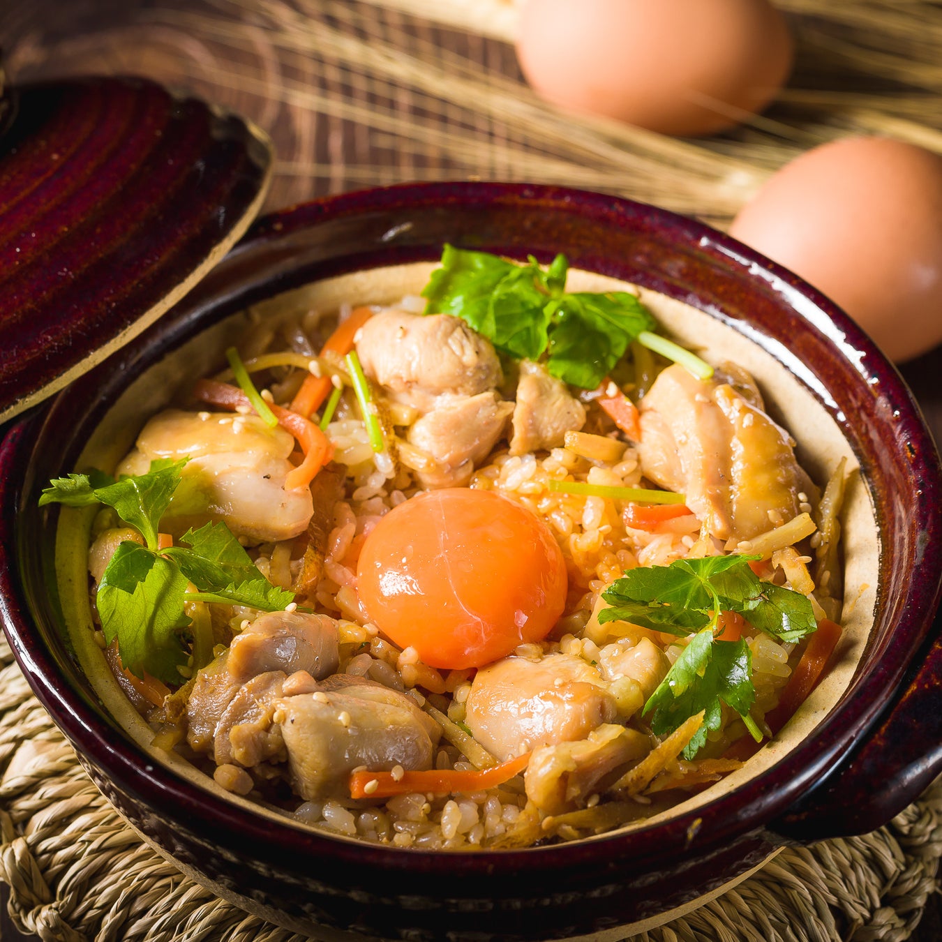 使用している純和鶏は、お米を食べて育ったブランド鶏です。その質肉はジューシーで旨みが濃く、弾力のある食感で、日本人が美味しいと実感できる味わいです。さらに真ん中に乗せる卵は 栃木県のブランド卵である“那須御養卵” (なすごようらん)。こだわりの素材を使用した究極の“親子”土鍋ご飯です。