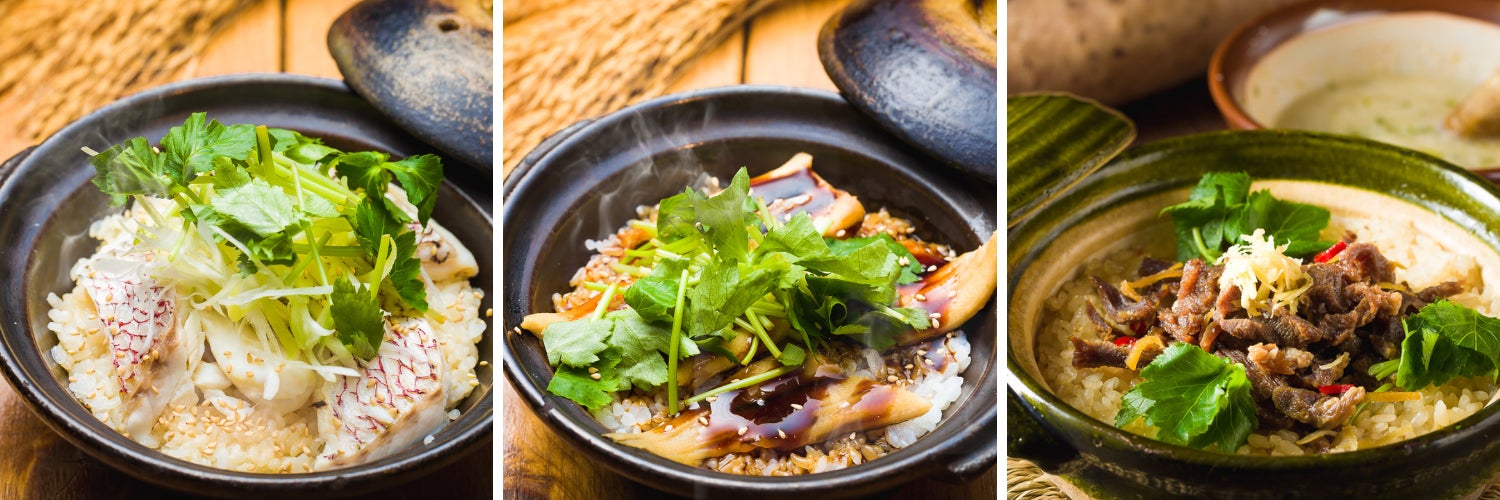名物の土鍋ご飯は、注文をいただいてから浸水させたお米にお出汁を加え、ひとつひとつ炊き上げているため【毎回炊き立て】をお楽しみいただける当店の人気商品です。グランドメニューのリニューアルに先行して販売していた新ラインナップは全5種類。どれもお米の旨味を最大限に引き出し、お酒との相性も抜群の自慢のラインナップです。ぜひお店で炊き立てをお楽しみください。