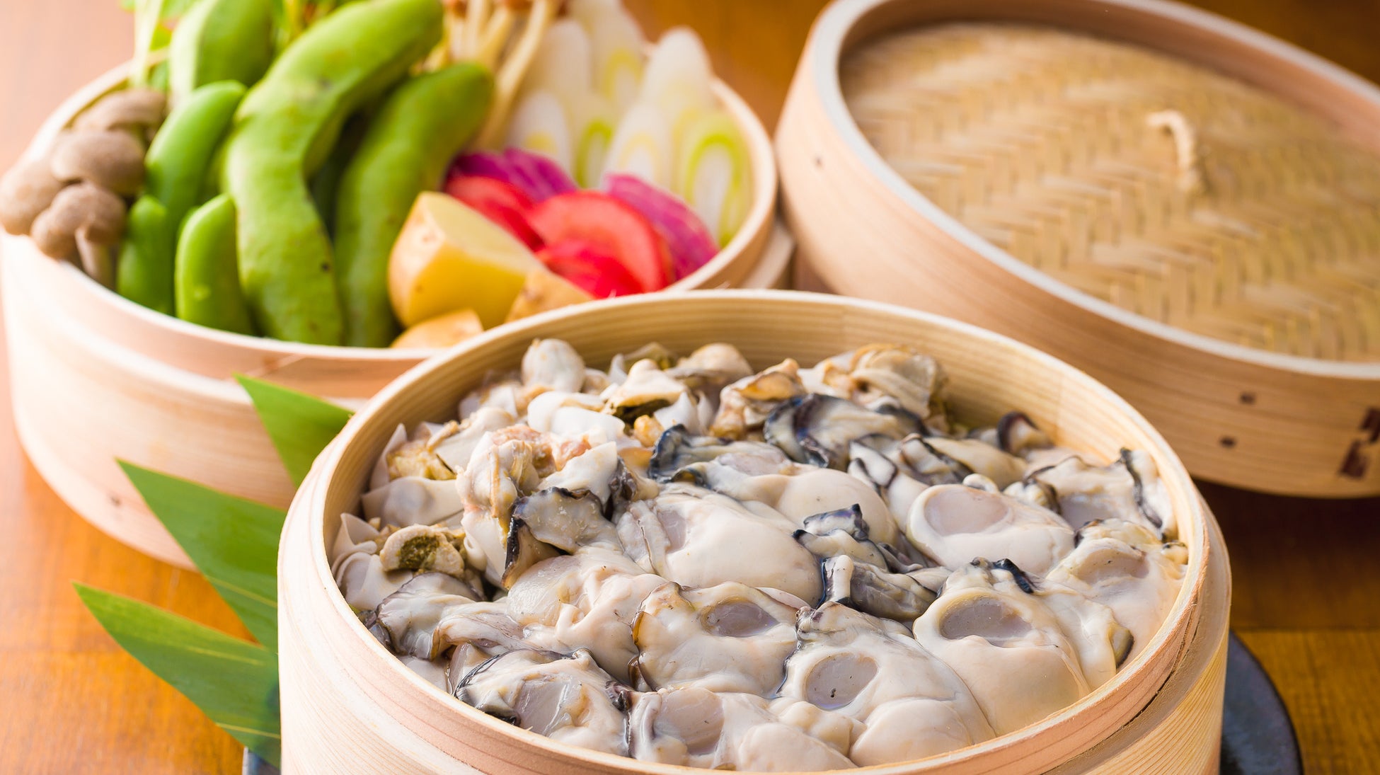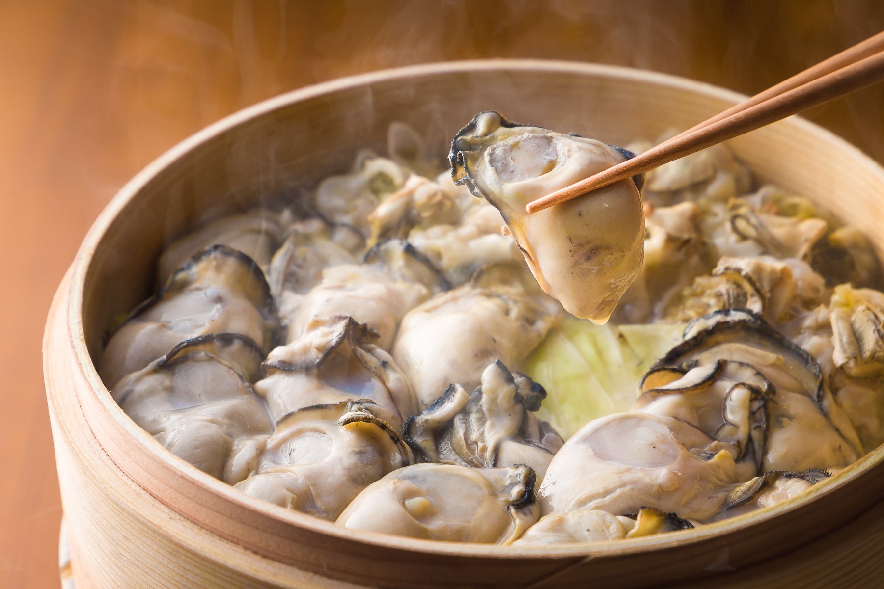 牡蠣といえば生牡蠣やカキフライなどが王道ですが、セイロ蒸しも負けず劣らずの美味しさです。じっくり低温で加熱することにより湿気が保たれ、しっとりふっくら、旨味のぎゅっと凝縮された蒸し牡蠣に仕上がります。