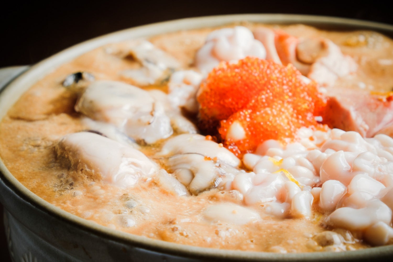 また、使用する「あん肝・白子・牡蠣」は、信頼している卸業者さまより毎日入荷しており、どれもひとつひとつが大きく、食べ応えも抜群です。数種類の味噌をブレンドしたコクたっぷりのスープの中で、あん肝・白子・牡蠣の旨味が三位一体となり濃厚でクリーミーな味わいに。辛口の日本酒との相性も抜群です。