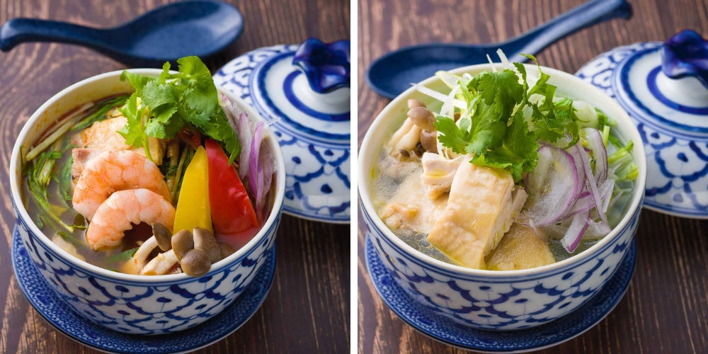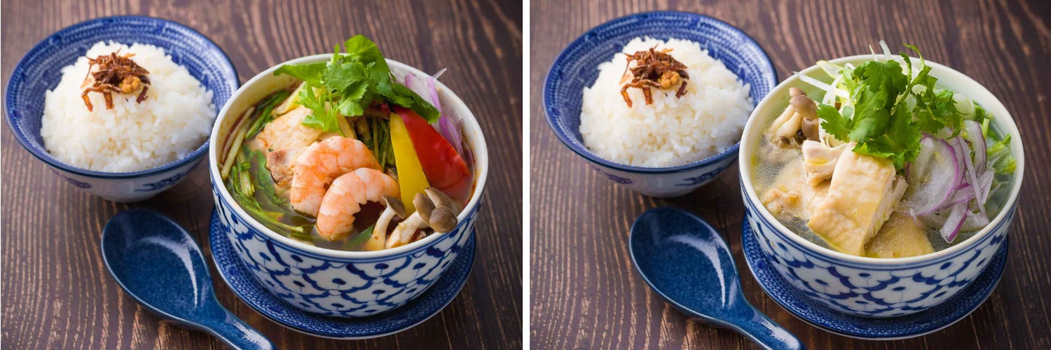 ・トムヤムスープ&鶏出汁ごはん(写真左)
