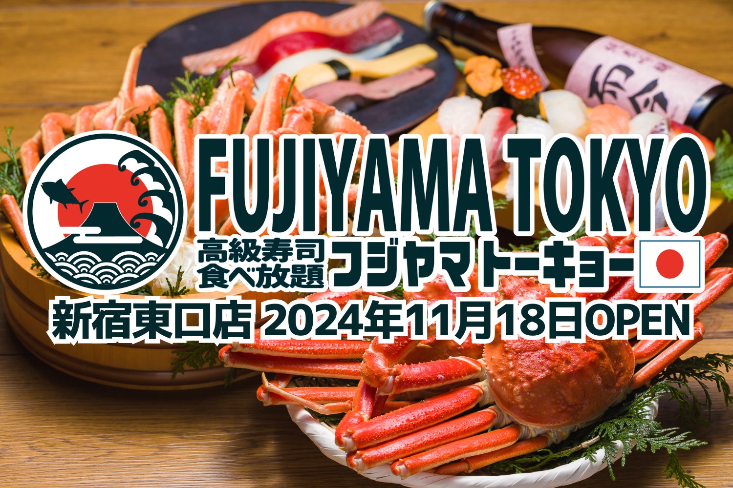 SNSやメディアで話題の”寿司食べ放題”が楽しめるFUJIYAMA TOKYOは、秋葉原店に続く待望の2号店を、2024年11月18日(月)に東京都・新宿にオープンいたします。本店の秋葉原店で大好評を博している、お寿司の食べ放題スタイルはそのままに、お寿司やカニ、海鮮料理を中心にご提供いたします。