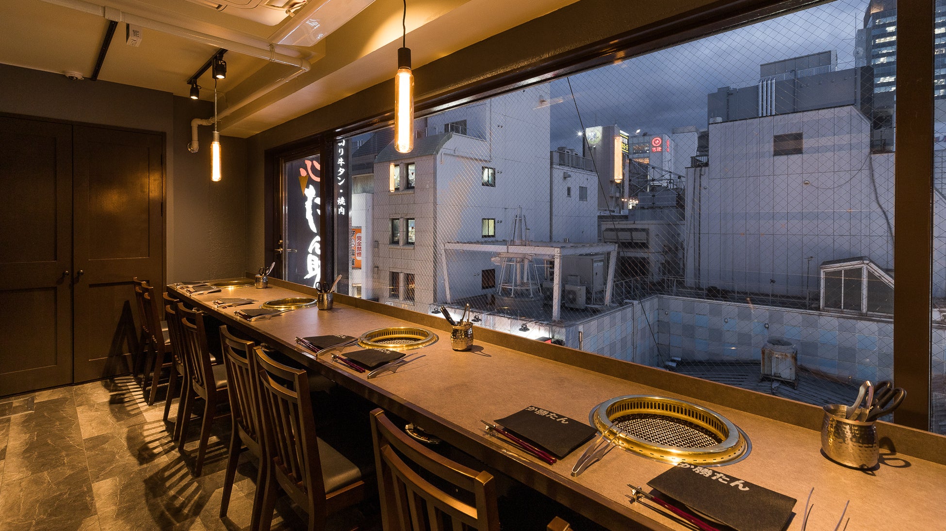 壁は落ち着いたグレーの壁紙で統一され、床には高級感のあるグレータイル調のデザインを採用。シンプルながらも上質な雰囲気が漂い、居心地の良い空間でこだわりの牛タンを心ゆくまでお楽しみいただけます。横並びシートも完備。